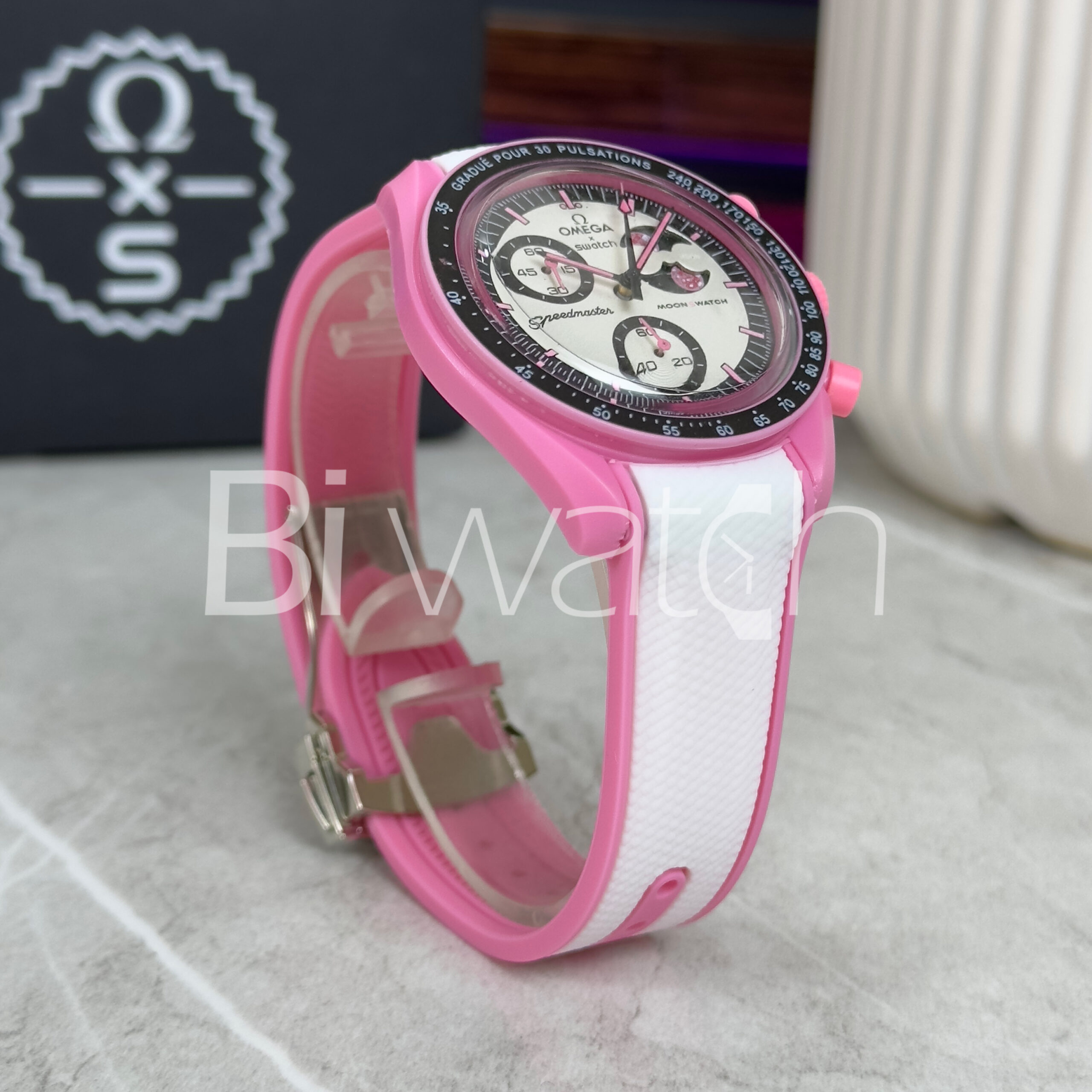 ساعت مچی امگا سواچ بند رابر Omega Swatch Mission The Pink Moonphase Rubber Strap