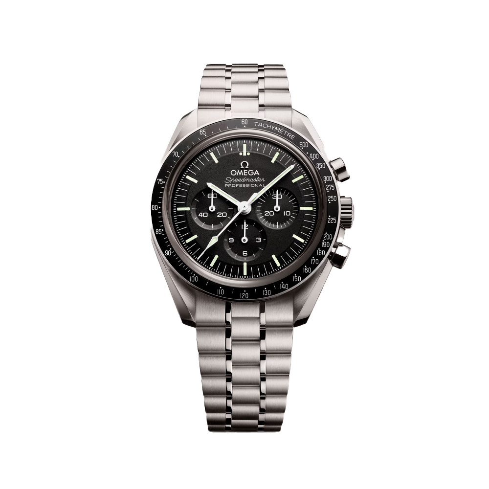 این ساعت حرفه‌ای OMEGA Speedmaster Professional دارای صفحه‌ای مشکی است.